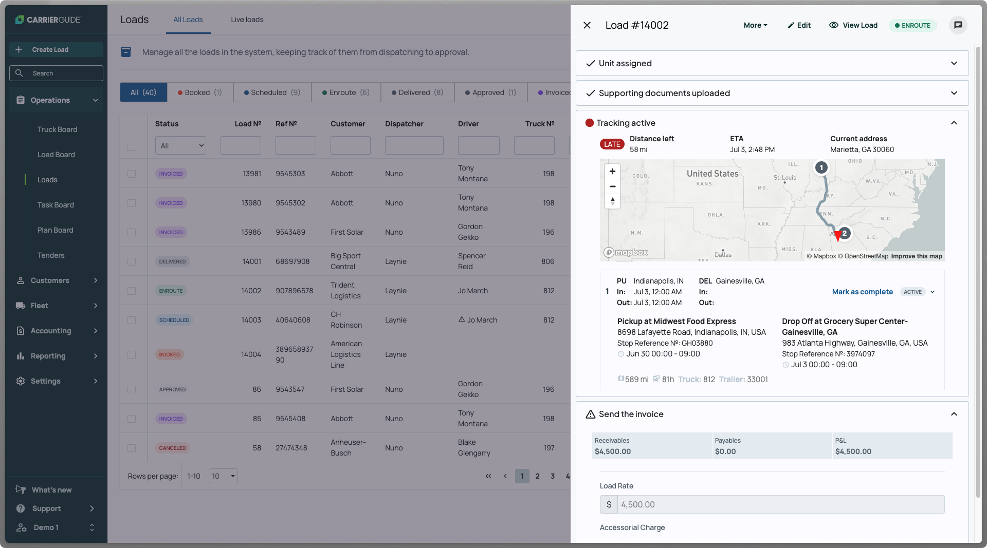 - Automated Load Lifecycle Update – Real-time Motive data powers automatic check-in, check-out, and in-transit status updates within CarrierGuide.