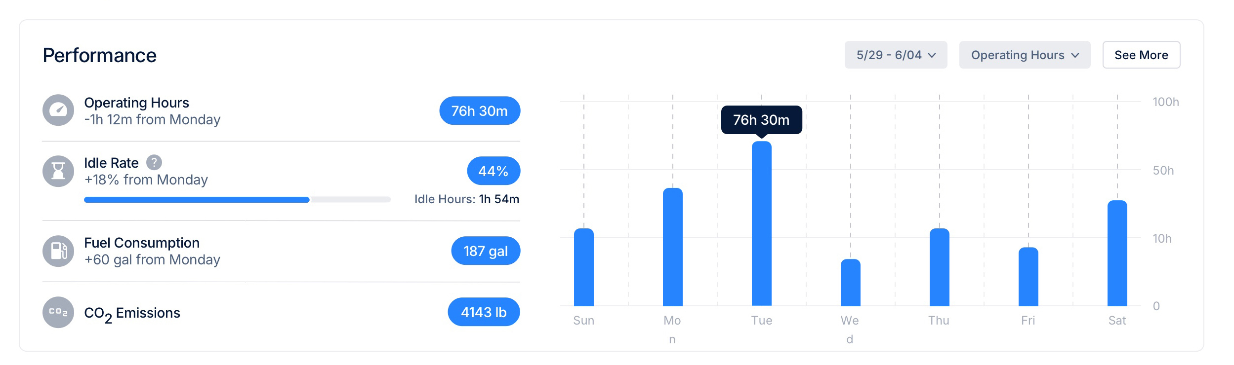 - Smarter Utilization Decisions: Accurately tracks equipment usage across a mixed fleet (on-road and heavy equipment) to optimize asset allocation and reduce unnecessary rentals or purchases.