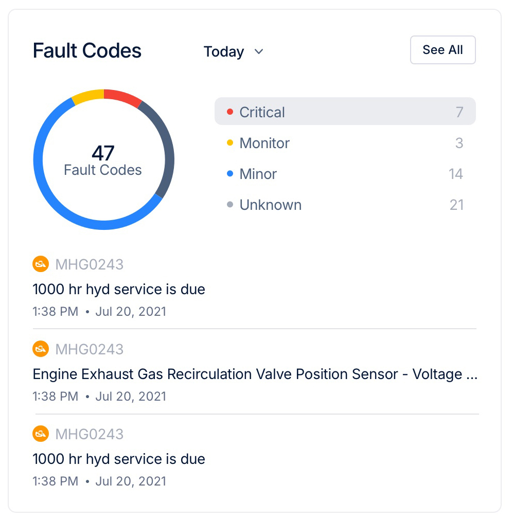 - Proactive Maintenance Scheduling: Uses accurate, automated engine hours and utilization data to trigger maintenance schedules precisely, ensuring timely service.