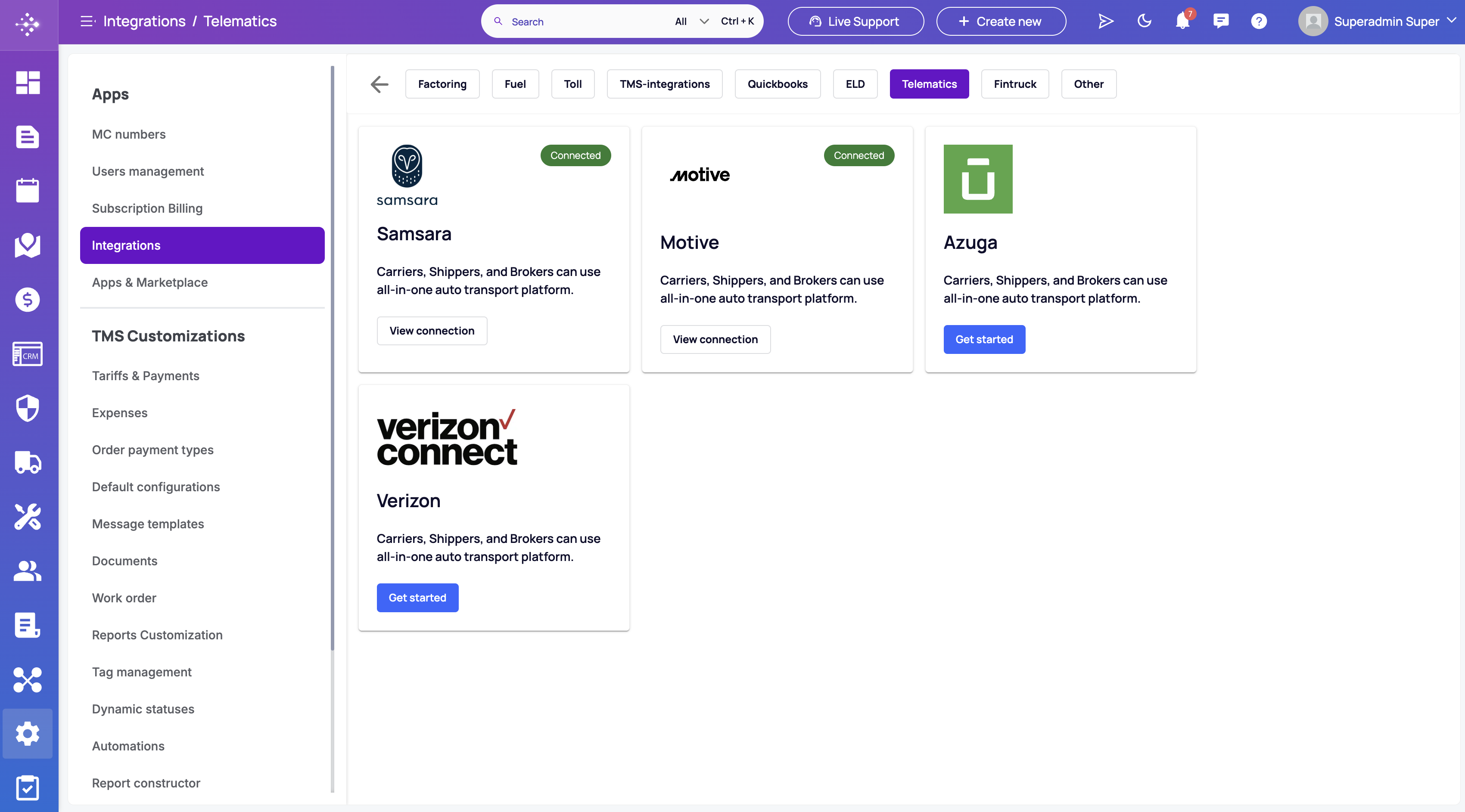- This integration is set up from the Datatruck system. Contact Motive to get an API key.