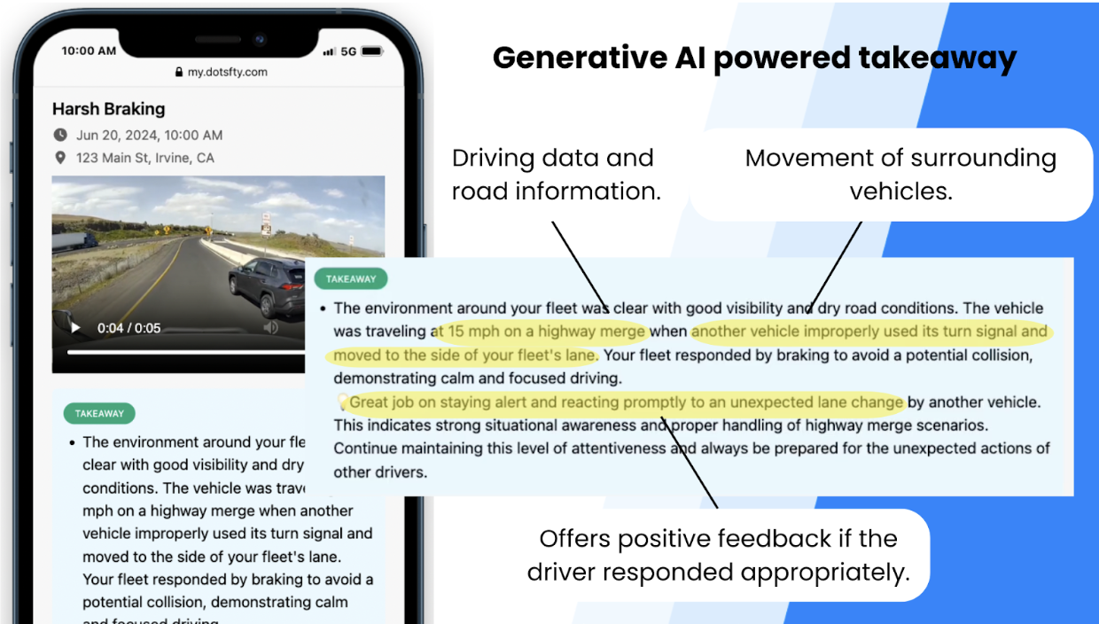 - AI for video review rivals human reviewers with no false positives. It adds 60 detailed tags based on holistic conditions, including the movement of surrounding vehicles, driver reactions, road conditions, and more.